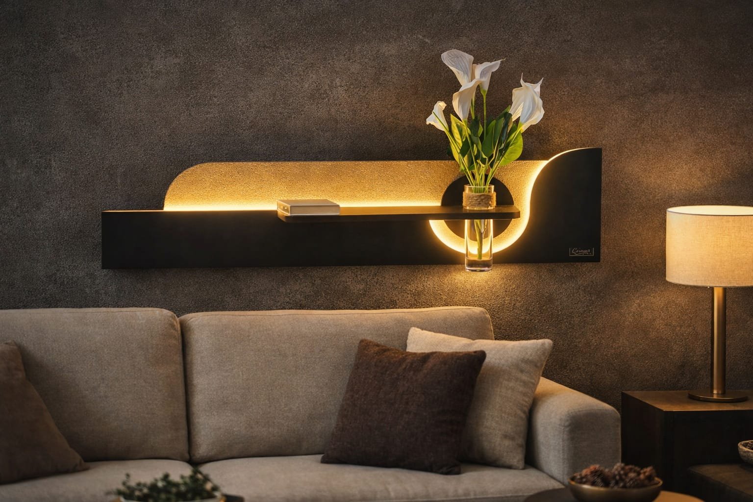 تابلوه مضئ مصنوع من الخشب مزود باضاءه LED مع ريموت كنترول للتحكم في الاضاءه ويشمل فازه ورد